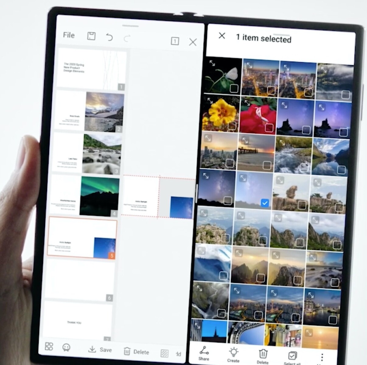 Das Herzstück des Geräts ist ganz klar das 8 Zoll große OLED-Display mit seiner Auflösung von 2.480 x 2.200 Pixeln. Faltet man das Gerät zusammen, dessen Design Huawei stolz als "Falcon Wing" bezeichnet, so bleibt ein Display mit einer Diagonale von 6,6 Zoll übrig.