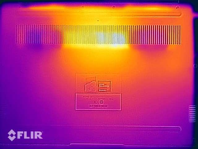 Die Temperaturentwicklung ist absolut unbedenklich und im Alltag wärmt sich das Gehäuse des MateBook 14 kaum auf. Selbst im Stresstest gibt es nur einen Hotspot (~49 °C) auf der Unterseite im hinteren mittleren Bereich, was absolut unbedenklich ist. Der mittlere Tastaturbereich erwärmt sich in diesem Extremfall auf etwas mehr als 40 °C, aber Einschränkungen gibt es dadurch nicht.