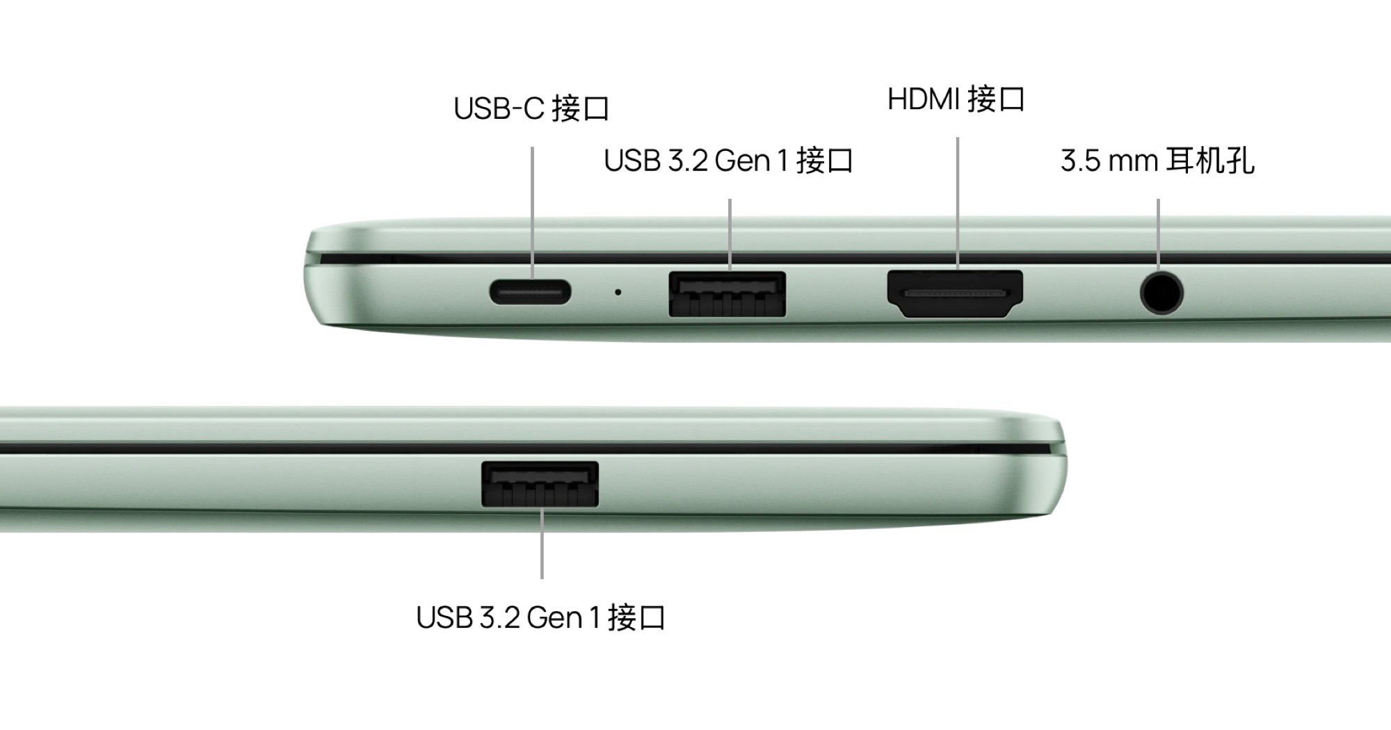 Das Notebook besitzt einen USB-C-Anschluss, zweimal USB-A (5 Gbit/s), HDMI und einen 3,5 mm Kopfhöreranschluss. Das Display ist eines der Highlights der Ausstattung, denn dieses basiert auf einem 14,2 Zoll OLED-Panel im 3:2-Format, das eine Auflösung von 2.880 x 1.920 Pixel, eine vollflächige Helligkeit von 500 Nits, eine HDR-Spitzenhelligkeit von 600 Nits und eine Bildfrequenz von 120 Hz erreicht.