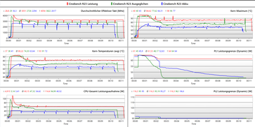 Im einstündigen Stresstest mit Prime95 und Furmark kann das MateBook zeigen, dass sein Kühlkonzept funktioniert. CPU und iGPU halten ihre Leistung nach einer kurzen Boostphase konstant. Der i9-13900H bleibt dabei größtenteils in seiner Komfortzone um 70 °C.