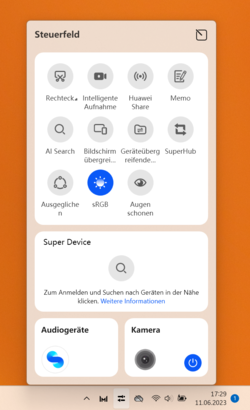 Auch wenn Huawei mit einem professionellen Display wirbt, ist das Display für Profi-Fotografen und Videofilmer möglicherweise nicht perfekt geeignet, da es nur den kleineren sRGB Farbraum nahezu vollständig darstellt. AdobeRGB und DisplayP3 werden nur zu rund 65% wiedergegeben.