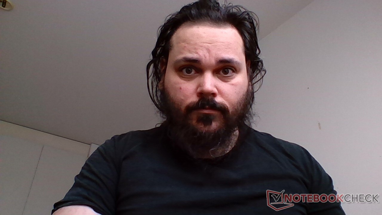 Die 720p-Webcam im MateBook D 14 liefert etwas bessere Bilder als die meisten 720p-Webcams. Der suboptimale Winkel, der sich durch die Platzierung auf der Tastatur zwischen den Tasten "F6" und "F7" ergibt, lässt sich etwas verbessern, indem man den Office-Laptop hinten aufbockt. Videokonferenzen steht dann nichts mehr im Wege.
