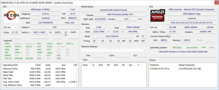 | Huawei MateBook D 15 Ryzen 5 5500U | |