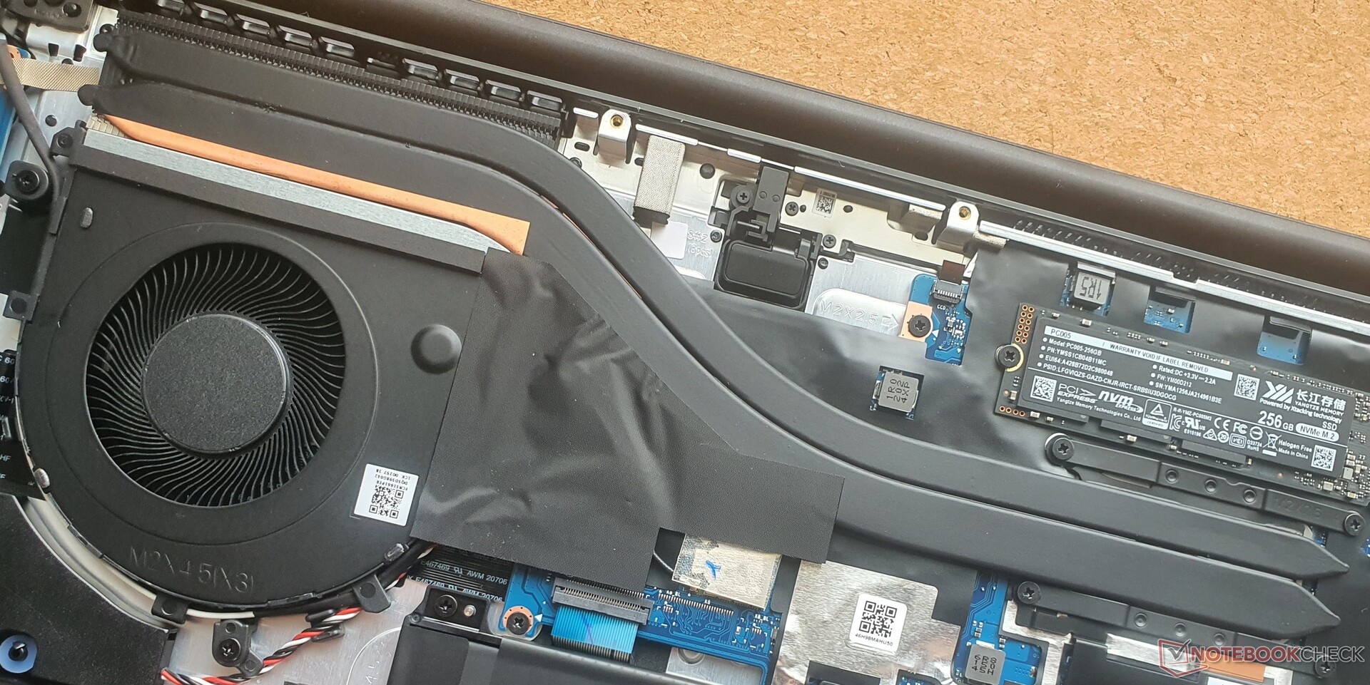 Nach dem Lösen von zehn Torx-T5-Schrauben ist das Geräteinnere leicht zugänglich. Der verschraubte Akku und die M.2-2280-SSD können ausgetauscht werden. WLAN-Chip und RAM sind verlötet, während das AMD Modell auf ein gestecktes Wi-Fi-Modul setzt. Der 2,5-Zoll-Schacht ist aufgrund fehlender Anschlussmöglichkeiten redundant.