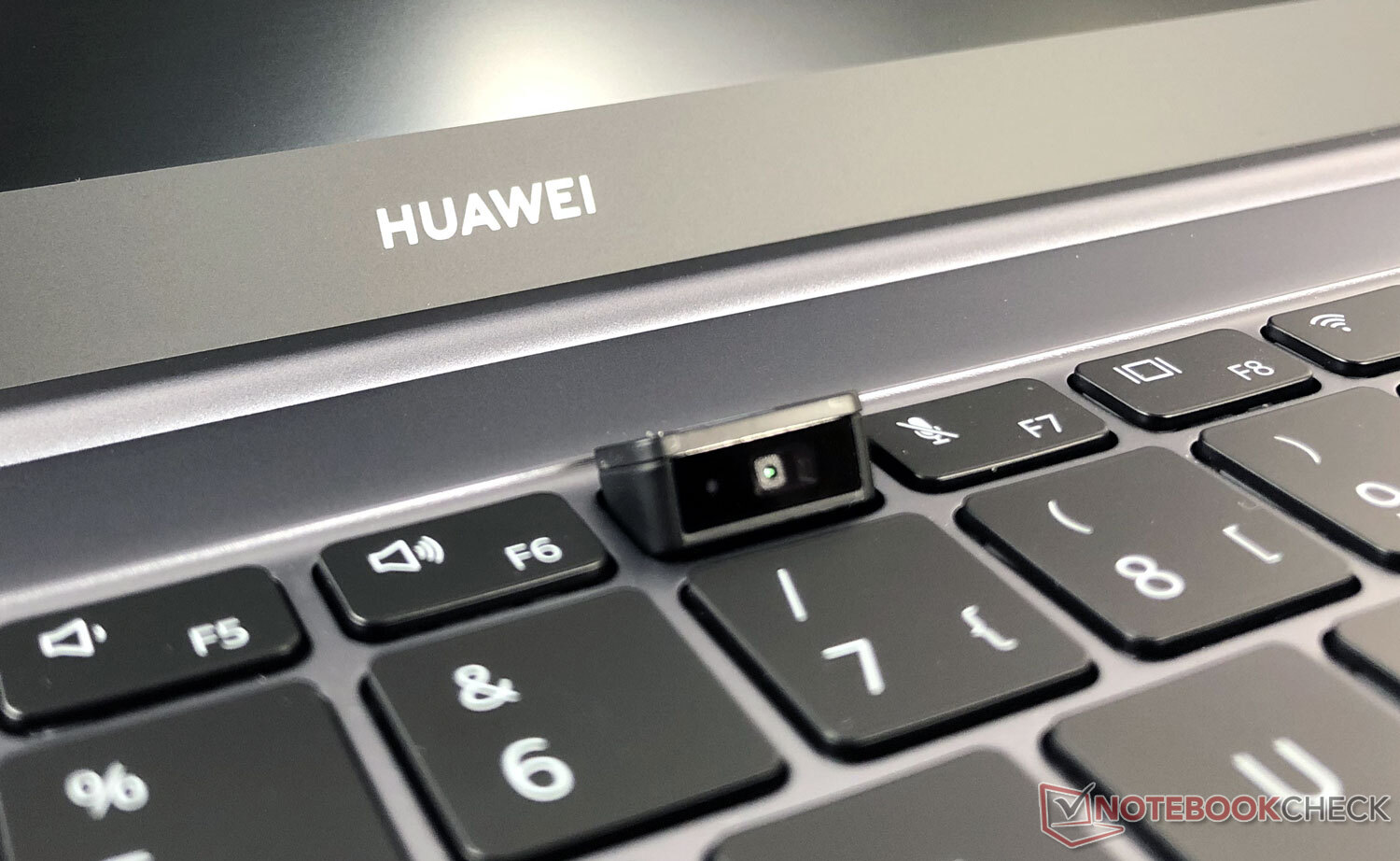 Die integrierte Webcam löst mit 720p auf und bietet eine unterdurchschnittliche Qualität. Für Video-Calls und Co. reicht sie. Eigentlich würde dies als Aussage genügen, wenn wir hier nicht ein Notebook von Huawei vor der Brust haben. Der Hersteller ist dafür bekannt, dass er die Webcam nicht klassisch im oberen Bildschirmrand unterbringt, sondern in der Tastatur zwischen F6 und F7 versteckt.