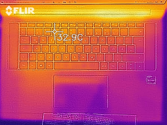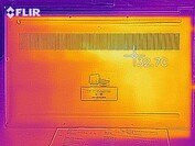 (+) Die Handballen und der Touchpad-Bereich erreichen maximal 32 °C und damit die typische Hauttemperatur und fühlen sich daher nicht heiß an.