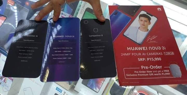 In einer Facebook-Gruppe wurde ein entsprechendes Verkaufsposter für das Huawei Nova 3i gepostet, auf dem das Nova 3i abgebildet ist. Das Nova 3i hat wie das Nova 3 und Nova 3e eine Notch und kommt ebenfalls mit "24 MO Four AI Cameras" sowie 128 GB internem Systemspeicher. Zu den Preisen gibt es bisher keine Informationen.