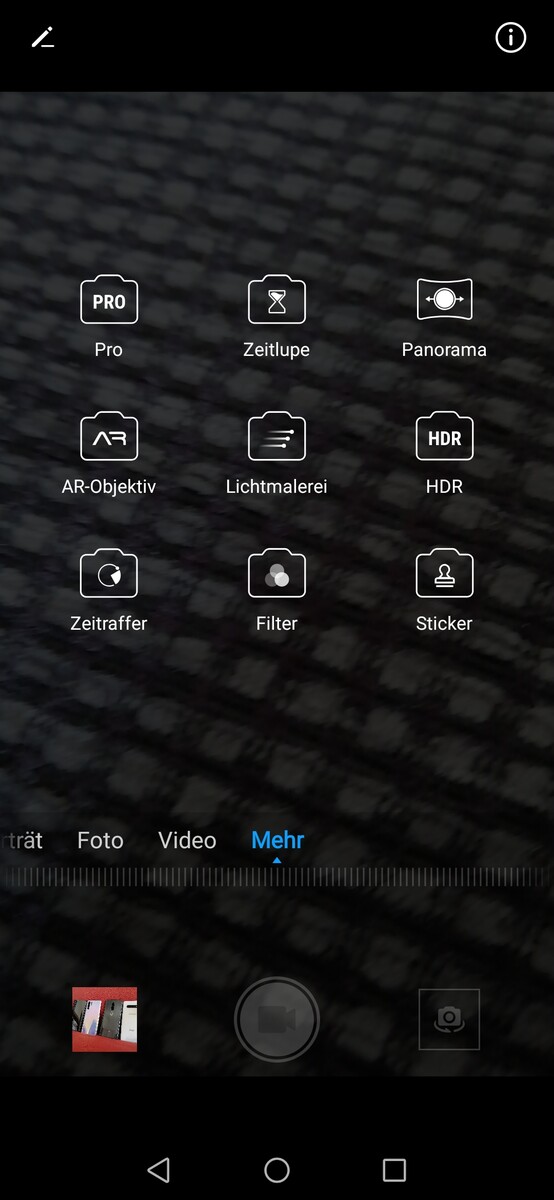 Das Highlight des P Smart Z ist die motorisierte 16-MP-Kamera oberhalb der Front, aber nur in puncto Designsprache. Ein Selfie-Spezialist ist das Mittelklasse-Handy trotz Pop-up-Cam nämlich nicht. Die Aufnahmen neigen zu Überbelichtung, sind detailarm und zeigen deutliche Artefakte. Als etwas störend empfinden wir zudem die Weichzeichnung in den Fotos. Die Offenblende von f/2.0 ist außerdem nicht sehr lichtsensitiv.
