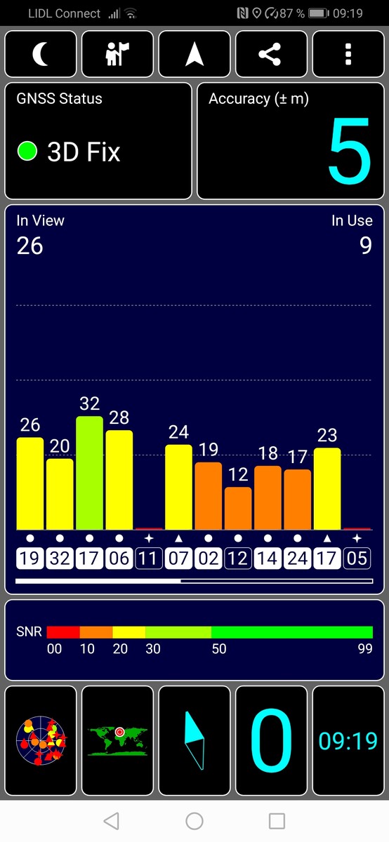 Die Positionsbestimmung mit dem Huawei P Smart Z erfolgt mittels der Satellitensysteme GPS, GLONASS sowie BeiDou. Der Satfix erfolgt sowohl im Freien als auch im Gebäude nach einer kurzen Verzögerung von unter einer Minute mit einer Genauigkeit von etwa 5 Metern.