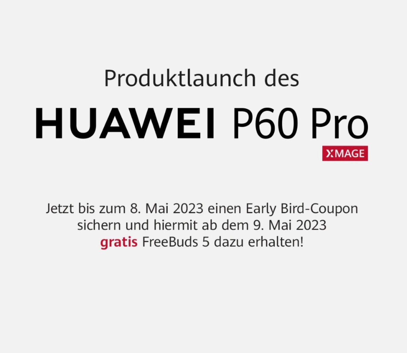 Um das Smartphone attraktiver zu machen, hat Huawei schon jetzt eine Vorbesteller-Aktion gestartet. Wer sich ab heute bis zum 8. Mai auf der Huawei Aktionsseite registriert, erhält einen kostenlosen Early-Bird-Coupon. Wird dieser vom 9. Mai bis zum 5. Juni beim Kauf eines Huawei P60 Pro eingelöst, erhalten Käufer die brandneuen Huawei FreeBuds 5 (ca. 159 Euro auf Amazon) kostenlos dazu.