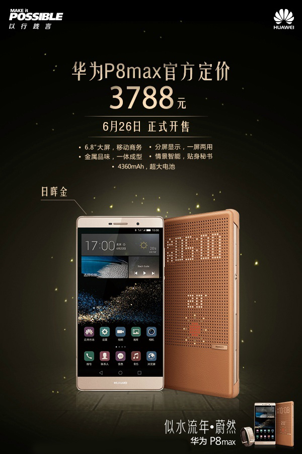 Nach P8 und P8 Lite wird Huawei morgen in China auch das P8 Max an den Start bringen. Preis: 3788 Yuan (~ 545 €). Vorgestellt wurde das XXL-Smartphone schon im April auf einem Launch-Event in London. In Deutschland kann das 182,7 x 93 x 6,8 Millimeter messende und 228 Gramm schwere Riesenphone mit einem voraussichtlichen Liefertermin im August diesen Jahres bereits für 650 Euro vorbestellt werden.