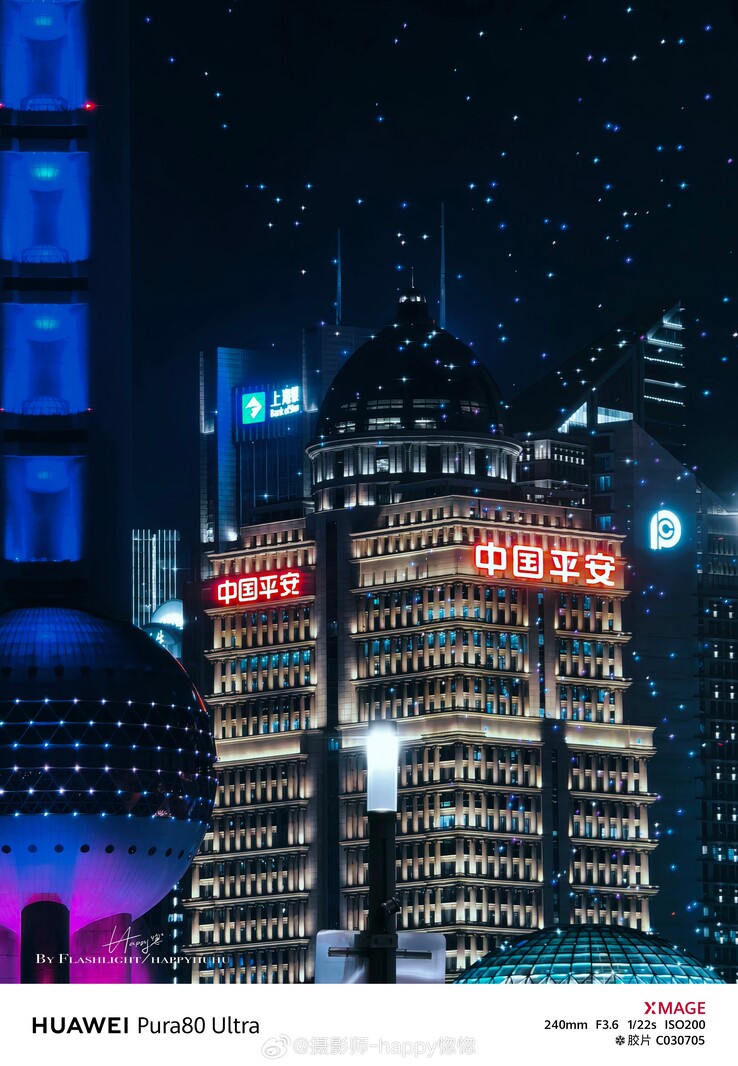 Das gilt auch für die 24mm Photo-Samples, die wir im chinesischen Mikroblogging-Netz gefunden haben. Das Gros der verfügbaren Photos konzentriert sich zwar aus verständlichen Gründen auf das innovative Telefoto-Duo, an den bisher gesichteten Photos der 1-Zoll-Hauptkamera (sowie dem 2x Crop-Zoom) inklusive variabler Blende gibt es allerdings wenig auszusetzen. Letztere liefert dem Fotografen natürlich zusätzliche kreative Möglichkeiten, etwa um Lichtsterne zu erzeugen, wie im Beispiel unten.