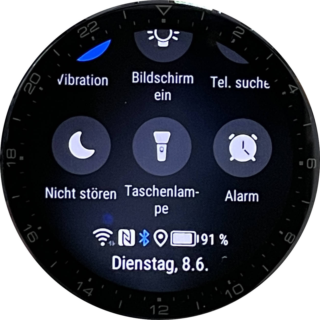 Im »Smart Modus« hält der Akku bis 5 Tage. Wie bei anderen Wearables verkürzt sich die Laufzeit deutlich, wenn man das Always-on-Display aktiviert. Entscheidet man sich dann auch noch für ein Live-Zifferblatt mit bewegtem Hintergrund, geht die Akkukapazität noch schneller zur Neige. Im Test reichte der Akku in einem solchen Szenario bei aktiver Nutzung mit einstündiger GPS-Nutzung und ein paar kurzen Telefonaten kaum länger als einen Tag. In der Praxis kommt es daher darauf an, einen guten Kompromiss zwischen Laufzeit und Nutzung der Komfortfunktionen zu finden.