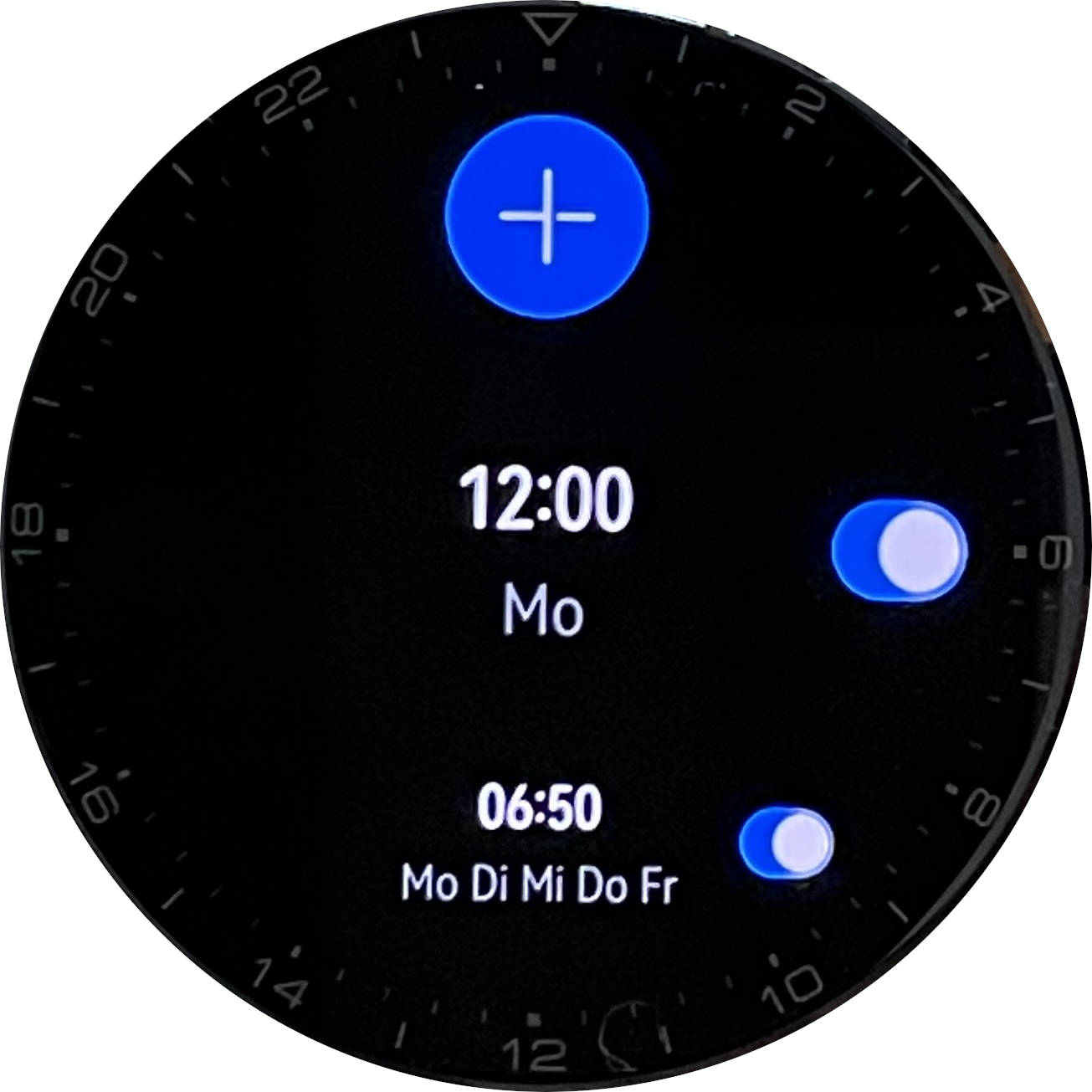 Bedient wird die Huawei Uhr über den Touchscreen und zwei seitliche Tasten. Die obere von beiden ist als Krone drehbar und erleichtert das Blättern durch Menüs und Trainingsprotokolle ebenso wie das Einstellen von Alarmen.