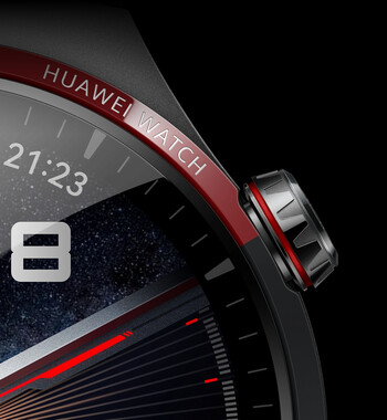 Zum einen hebt sich die Huawei Watch 4 Pro Space Exploration Edition optisch vom klassischen Modell ab. "Das Design ist von der Laval-Düse im Raketentriebwerk inspiriert", so der Hersteller. Neben einem besonders robusten Diamant-Titangehäuse mit Saphirglas weist die Smartwatch auch eine Keramiklünette auf, die mit roten Elementen abgesetzt ist. Das Titanarmband ist wie das Gehäuse in Dunkelgrau gehalten.