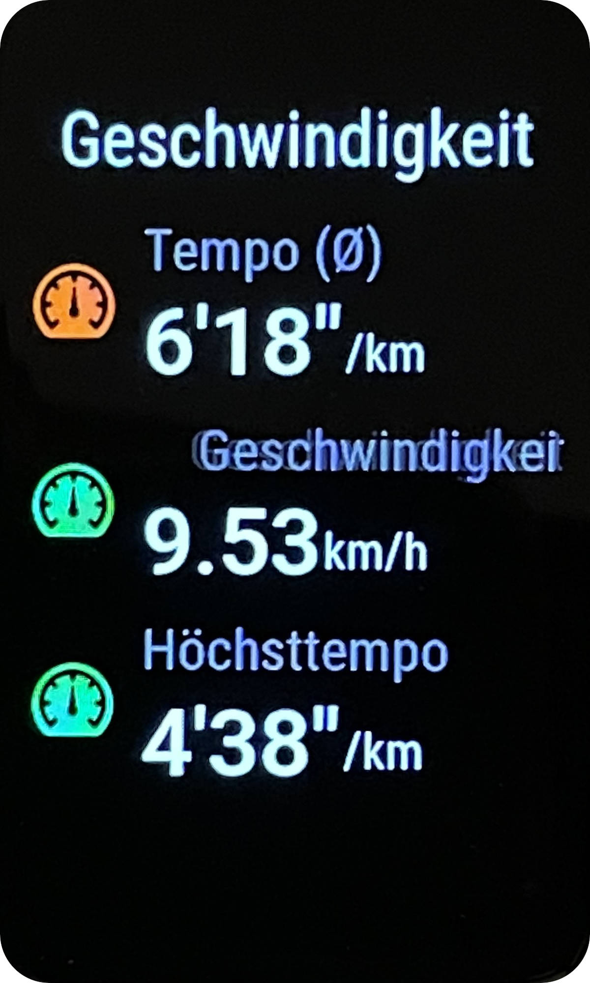 Nach wie vor gehören auch Laufkurse für Anfänger und fortgeschrittene Läufer zur Trainings-App. Aktiviert man vor einem normalen Lauf-Training die Option Manuelle Segmentinformationen, zeigt die Watch nach zweimaligem Drücken der Seitentaste Zeit Distanz und Tempo für das zurückliegende Segment. Interessant ist das beispielsweise im Gelände, um sein Tempo auf geraden Strecken mit dem an Steigungen zu vergleichen. Im Trainingsprotokoll fehlte die Informationen zu den manuellen Segmenten allerdings. Trailrunning als Trainings-Modus ebenfalls.