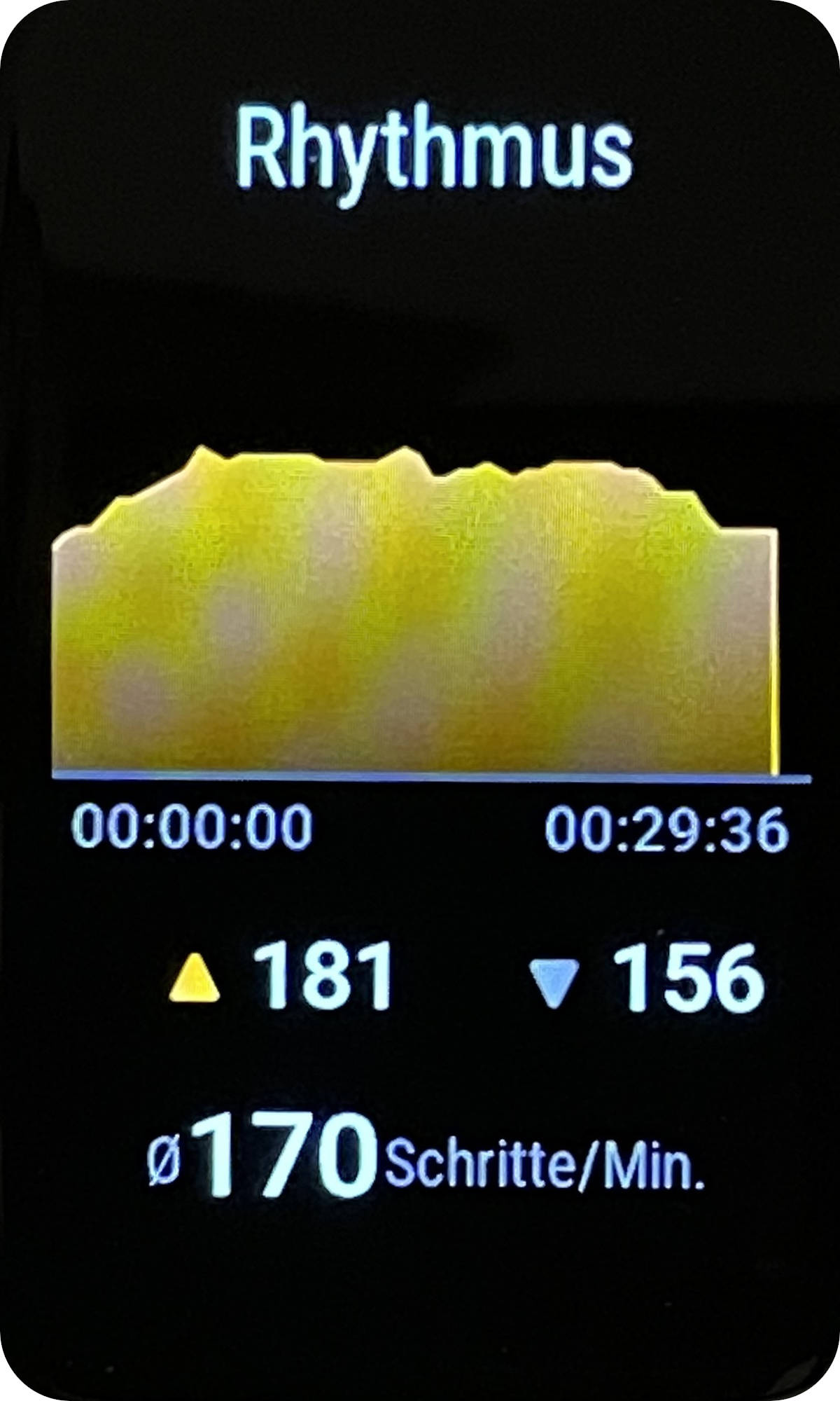 Was bei Garmin der Virtuelle Partner und bei Amazfit der Virtual Rabbit ist, heißt bei Huawei etwas tröge Intelligenter Begleiter. Dem weist man vor dem Lauf eine Zielzeit zu, um gegen sie anzutreten. Ein zusätzlicher Bildschirm zeigt dann während des Trainings, ob man hinter dem intelligenten Begleiter liegt oder ihm voraus ist.