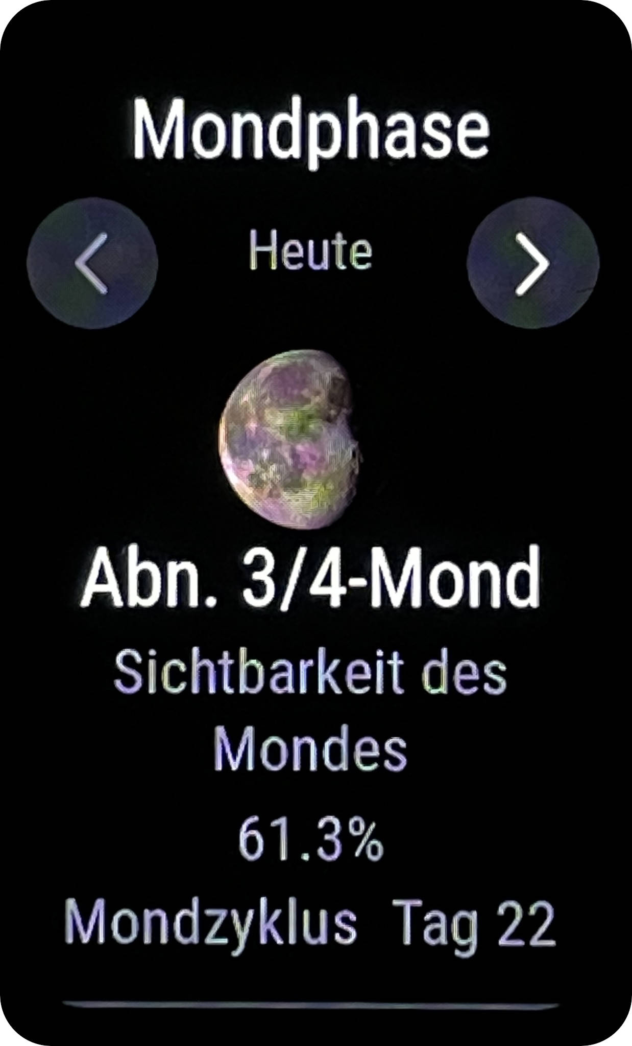 iPhone-Besitzer bleibt der Zugang zu weiteren Zifferblättern nicht mehr verwehrt – auch das war wichtig. Die neuen Zeitachsen von Sonne, Mond und Meeresspiegel sind hilfreich für stimmungsvolle Fotos und allemal eine nette Ergänzung, die Huawei grafisch ansprechend umsetzt.