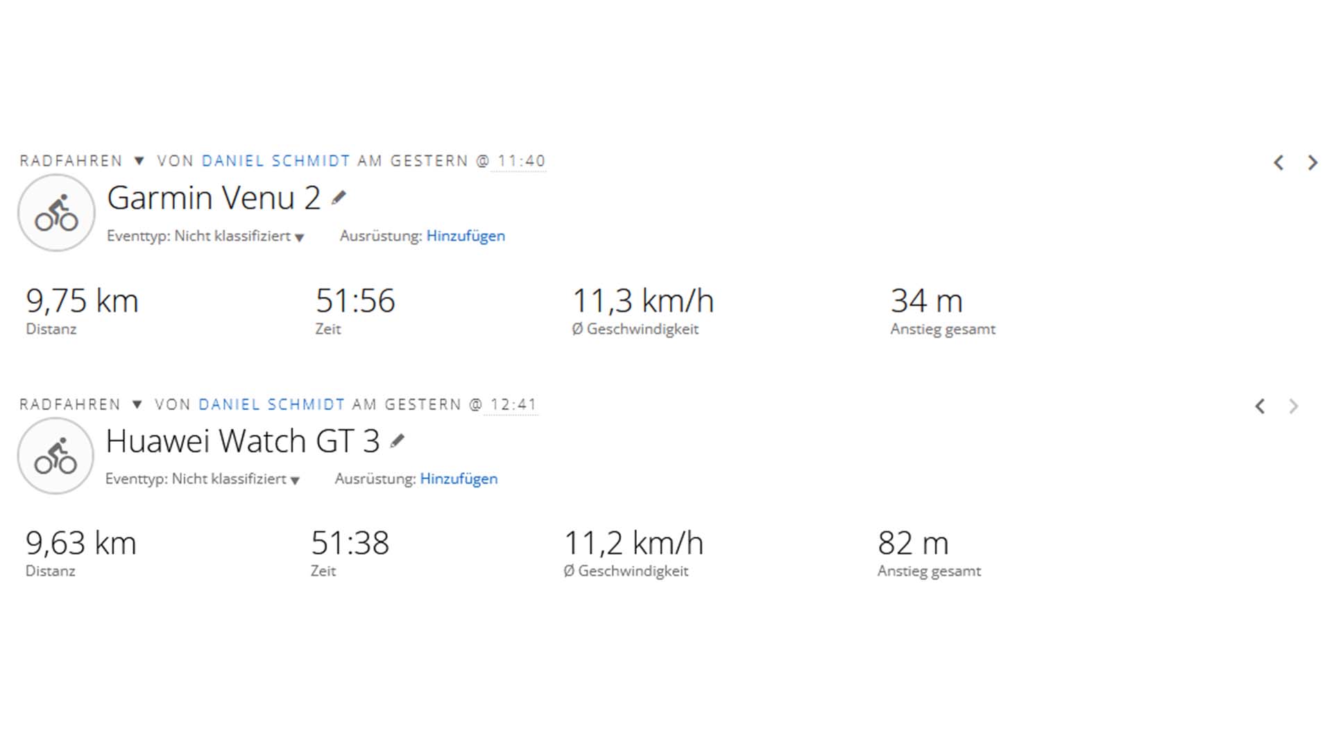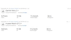 Die Huawei Watch GT 3 verbindet sich für die Ortung via GPS, Beidou, GLONASS, Galileo und QZSS, um zurückgelegte Strecken aufzuzeichnen. Der Verbindungsaufbau dauerte im Test rund 20 Sekunden. Die Genauigkeit ist passabel, wie der Vergleich der Routen auf den unteren Bildern zeigt.