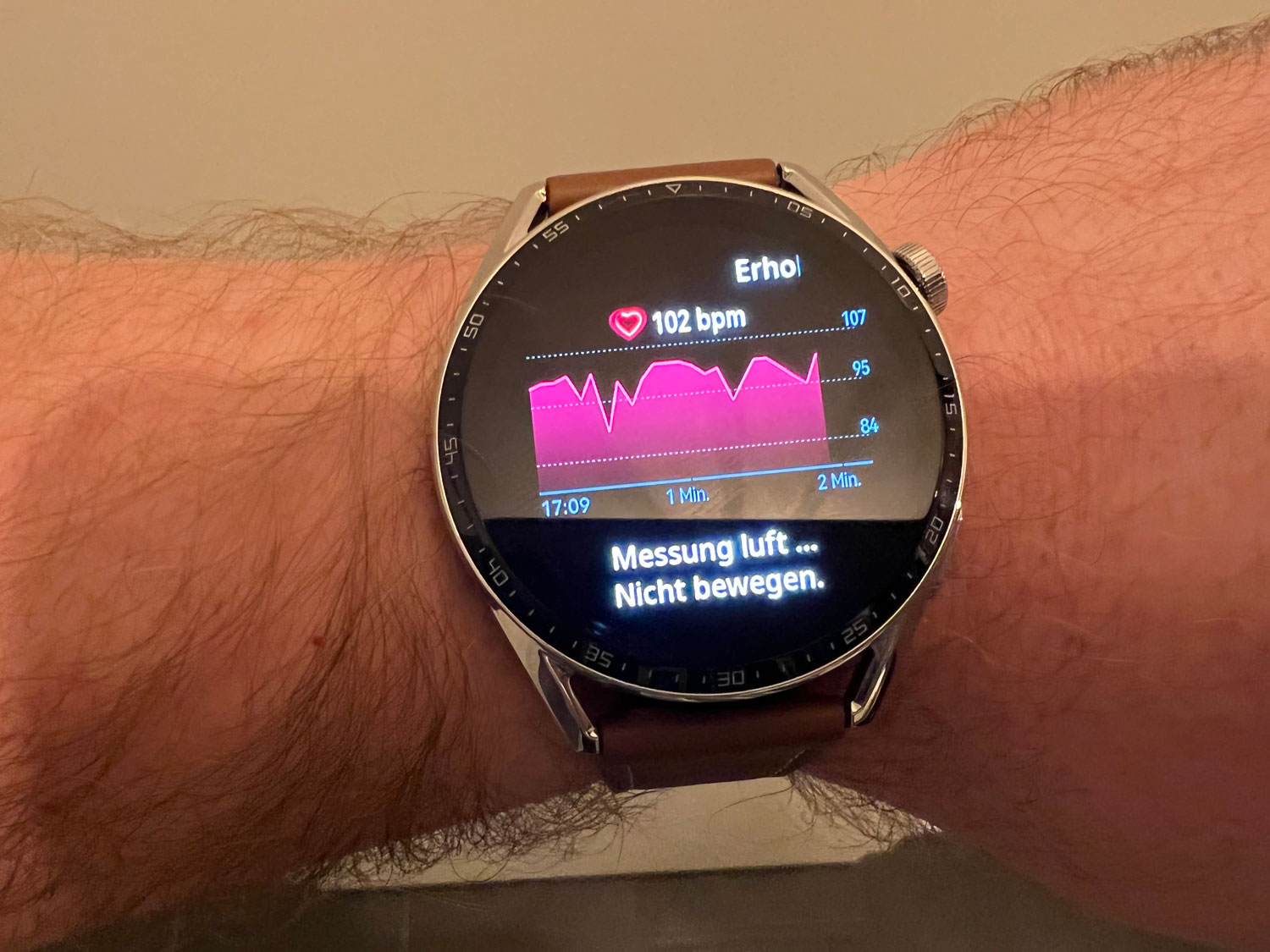 Nach dem Stoppen der Workout-Aufzeichnung kann eine detailliertere Einsicht in der App auf dem Smartphone erfolgen. Zudem misst die Smartwatch auf Wunsch auch binnen zwei Minuten die Erholung nach der Belastung und gibt so Einblicke in den aktuellen Trainingszustand. Ausprobiert haben wir die Trainingsaufzeichnung unter anderem bei einem zügigen Winterspaziergang bei eisigen Temperaturen, bei denen das Tracking gut funktioniert hat.