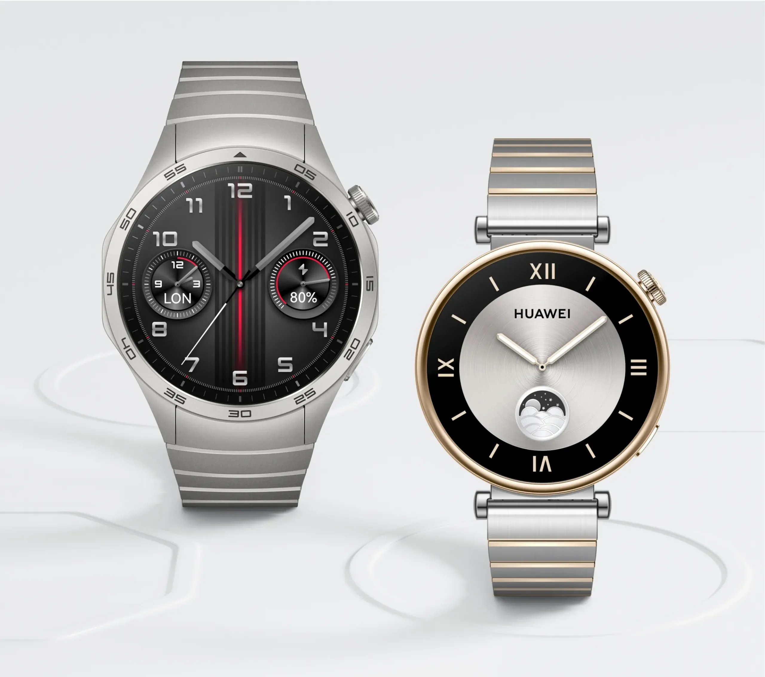Zur Wahl steht die Huawei Watch GT 4 in den zwei Größen 41 und 46 mm sowie jeweils in verschiedenen Farben. Das kleinere Modell ist für schmale re Handgelenke gedacht und dürfte mit ihrem filigranen Design primär die Damenwelt ansprechen, während die größere Version eine klassische Herren-Armbanduhr mit allerhand smarten Funktionen ist.