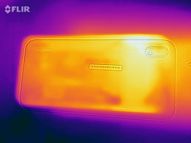Die Oberflächentemperaturen bleiben mit maximal 41,2 °C im Rahmen. Im Idle-Betrieb erwärmt sich lediglich der Bereich des SoCs oben rund um die Bildschirmnotch etwas, ansonsten bleibt das Gerät sehr kühl.