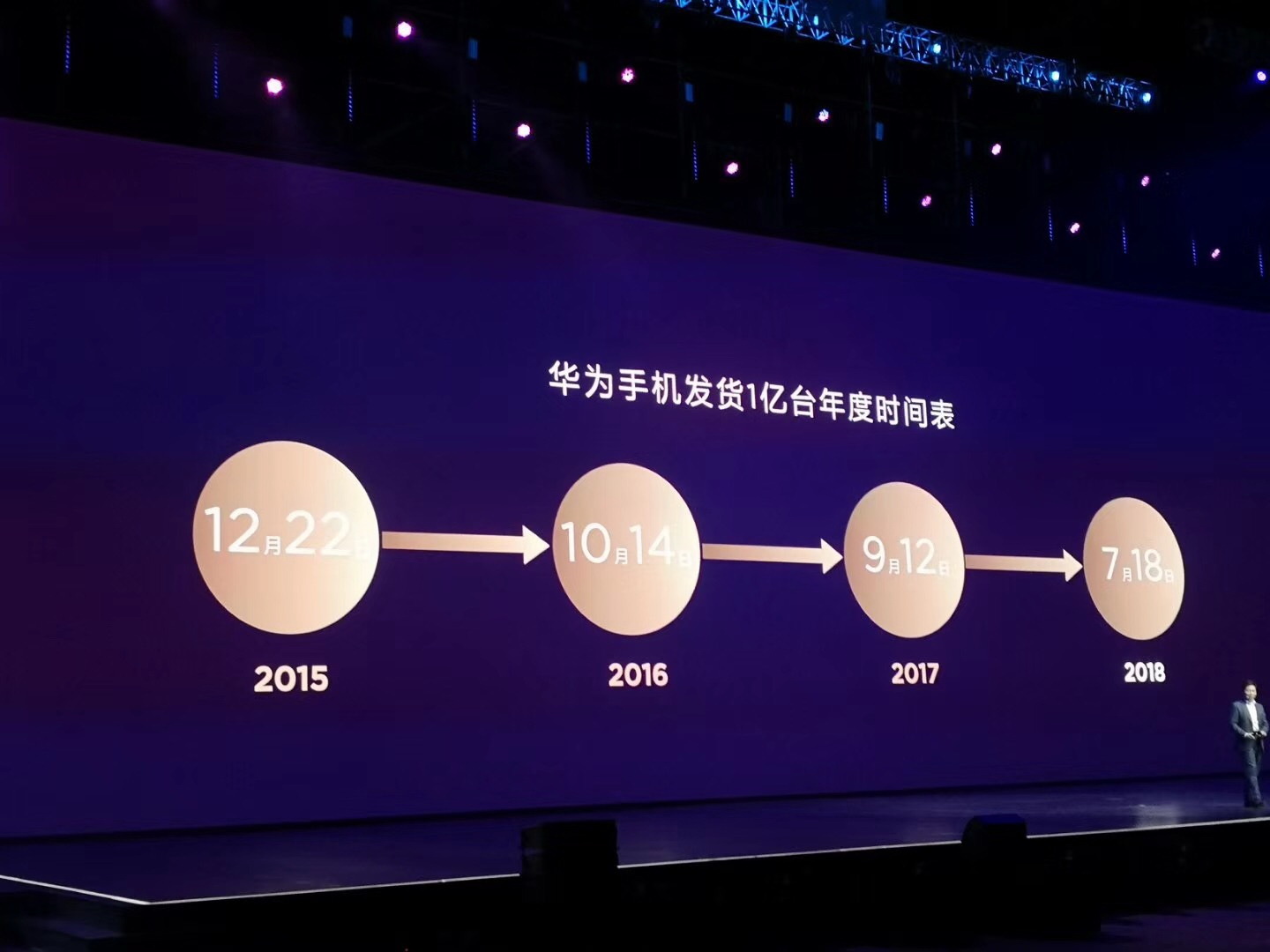 Auf einem Zeitstrahl demonstrierte Huawei, wie sich der Zeitraum zum Erreichen der 100-Millionen-Marke im Laufe der Zeit und der letzten Jahre immer mehr beschleunigt hat. Erreichte Huawei im Jahr 2015 die 100 Mio. erst am 22. Dezember, so gelang dies in den folgenden Jahren schon am 14. Oktober (2016) und 12. September (2017). Apple und Samsung sollten in den Rückspiegel sehen. Falls Huawei dieses Tempo beibehält - wer kann den Hersteller aus China dann noch am Überholen hindern?