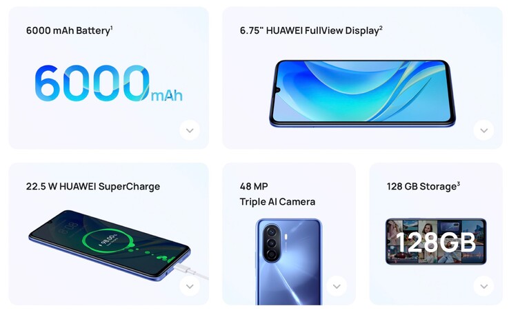 Mit dem Nova Y70 hat Huawei ein neues Mittelklasse-Smartphone vorgestellt, das aufgrund der nach wie vor gültigen US-Sanktionen auf ein integriertes 5G-Modem verzichten muss. Das Smartphone bietet vor allem einen überdurchschnittlich großen Akku mit einer Kapazität von 6.000 mAh, der über USB-C mit bis zu 22,5 Watt aufgeladen werden kann. Ein entsprechendes Ladegerät wird mitgeliefert.