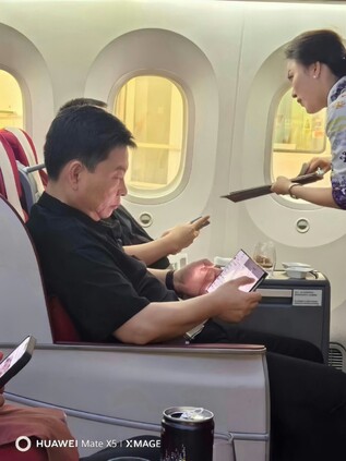 Huawei-Chef Richard Yu wurde erst vergangene Woche in einem Flugzeug dabei fotografiert, das noch nicht angekündigte Tri-Fold-Smartphone von Huawei verwendet zu haben. Dabei war das Tablet-Format bereits bestens zu erkennen, genau wie die beiden Display-Falze. Nun konnte cnBeta das unten eingebettete Bild veröffentlichen, welches den Huawei-CEO abermals mit dem doppelt faltbaren Smartphone zeigt.