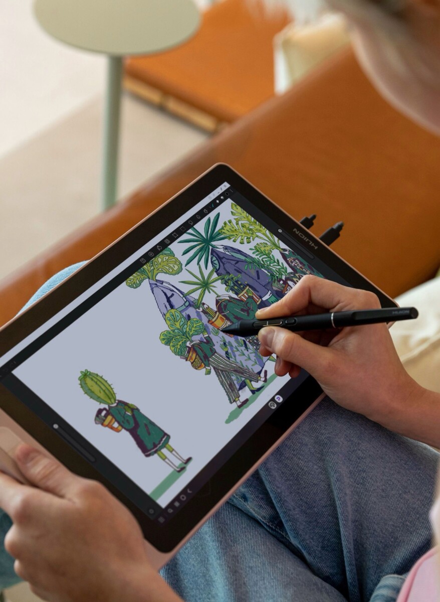 Huion bietet seit Jahren wesentlich günstigere Alternativen zu Zeichentabletts wie dem Wacom Cintiq 16 (ca. 512 Euro auf Amazon) an. Der Hersteller legt nun das Kamvas 13 neu auf, und bessert vor allem beim Stylus nach, denn der PW600L Digital Pen erkennt Druck in 16.384 Stufen. Der Stylus benötigt keine Batterien, der Silikon-Griff soll den Komfort verbessern, drei Buttons an der Seite erlauben es, schnell Pinseleinstellungen anzupassen.