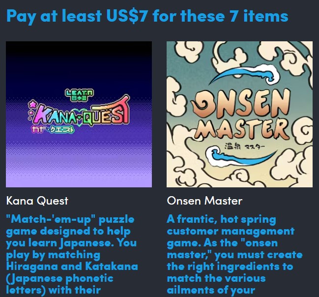 In Kana Quest lernen Spieler die japanischen Kana-Alphabete auf spielerische Weise kennen. Über gitterbasierte Puzzles ordnet man Hiragana- und Katakana-Kacheln so an, dass die Töne miteinander harmonieren. Das liebevoll gestaltete Lernspiel hat derzeit rund 30 Bewertungen auf Steam, von denen 89 % positiv sind. Der Preis liegt bei 12,49 Euro.