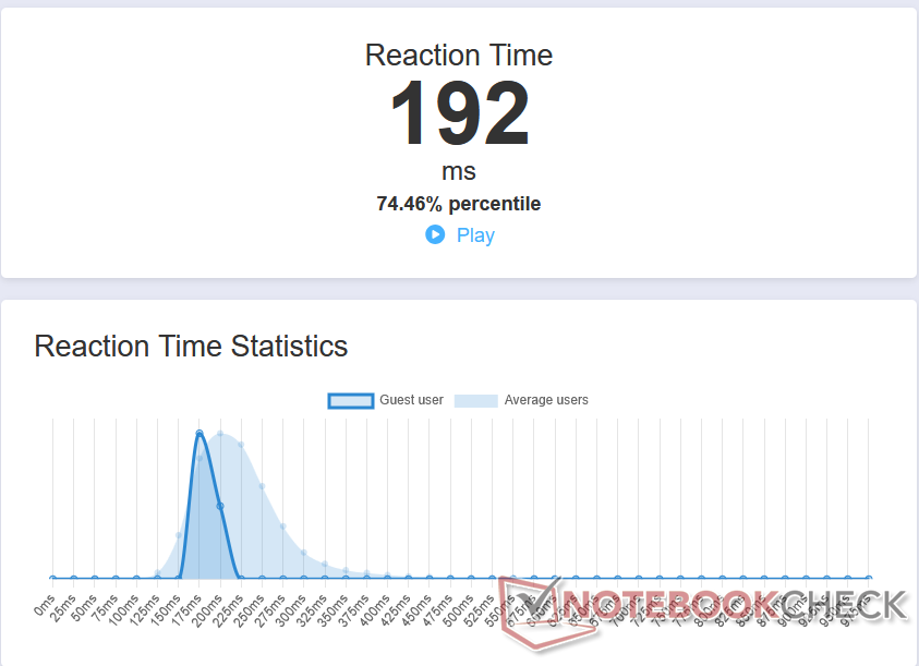 Die Reaktionszeiten bei Links- und Rechtsklicks waren niedrig, obwohl die Maus kabellos ist. Wir erreichten auch eine durchschnittliche Reaktionszeit von 192 msi im Human Benchmark-tool.