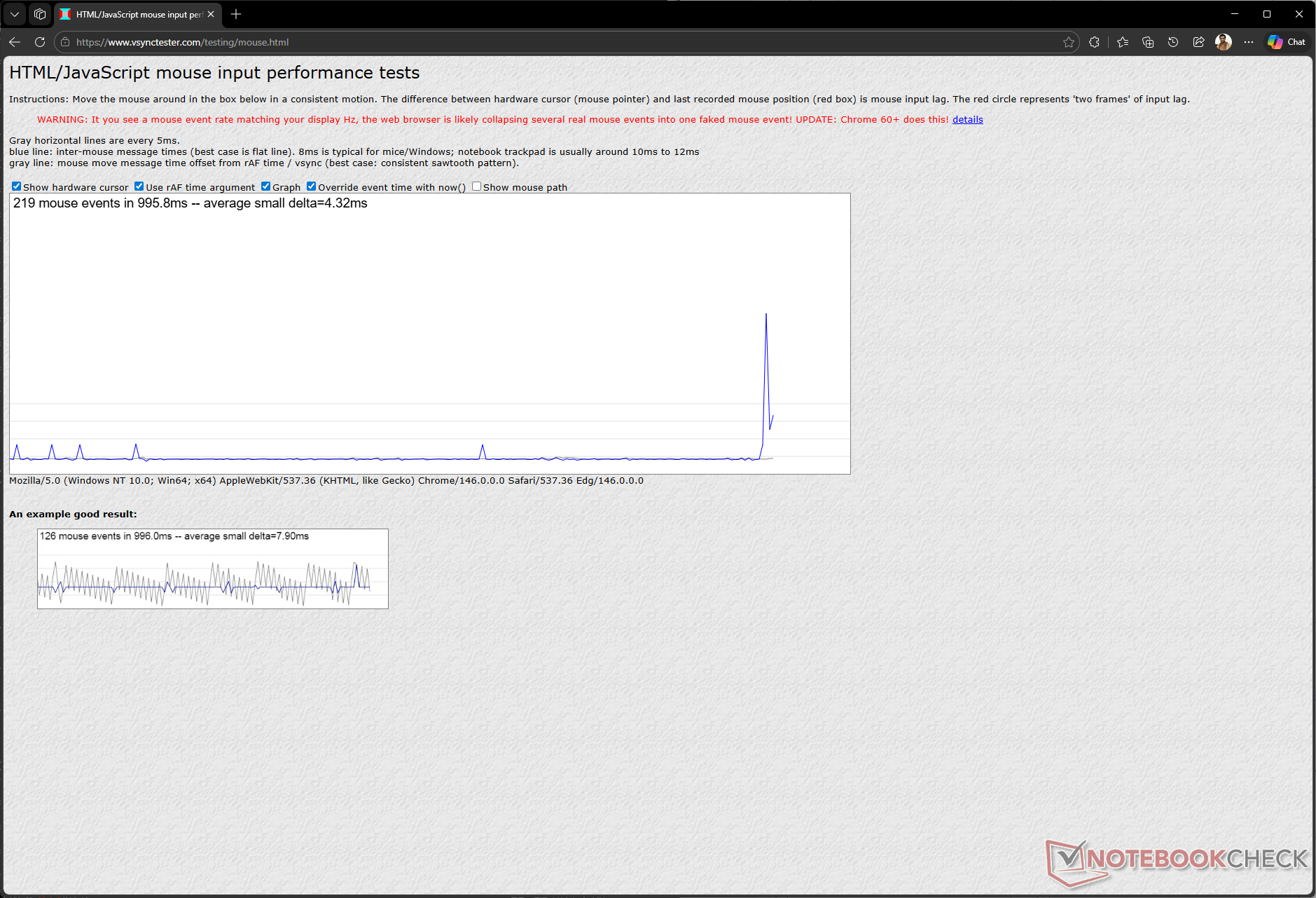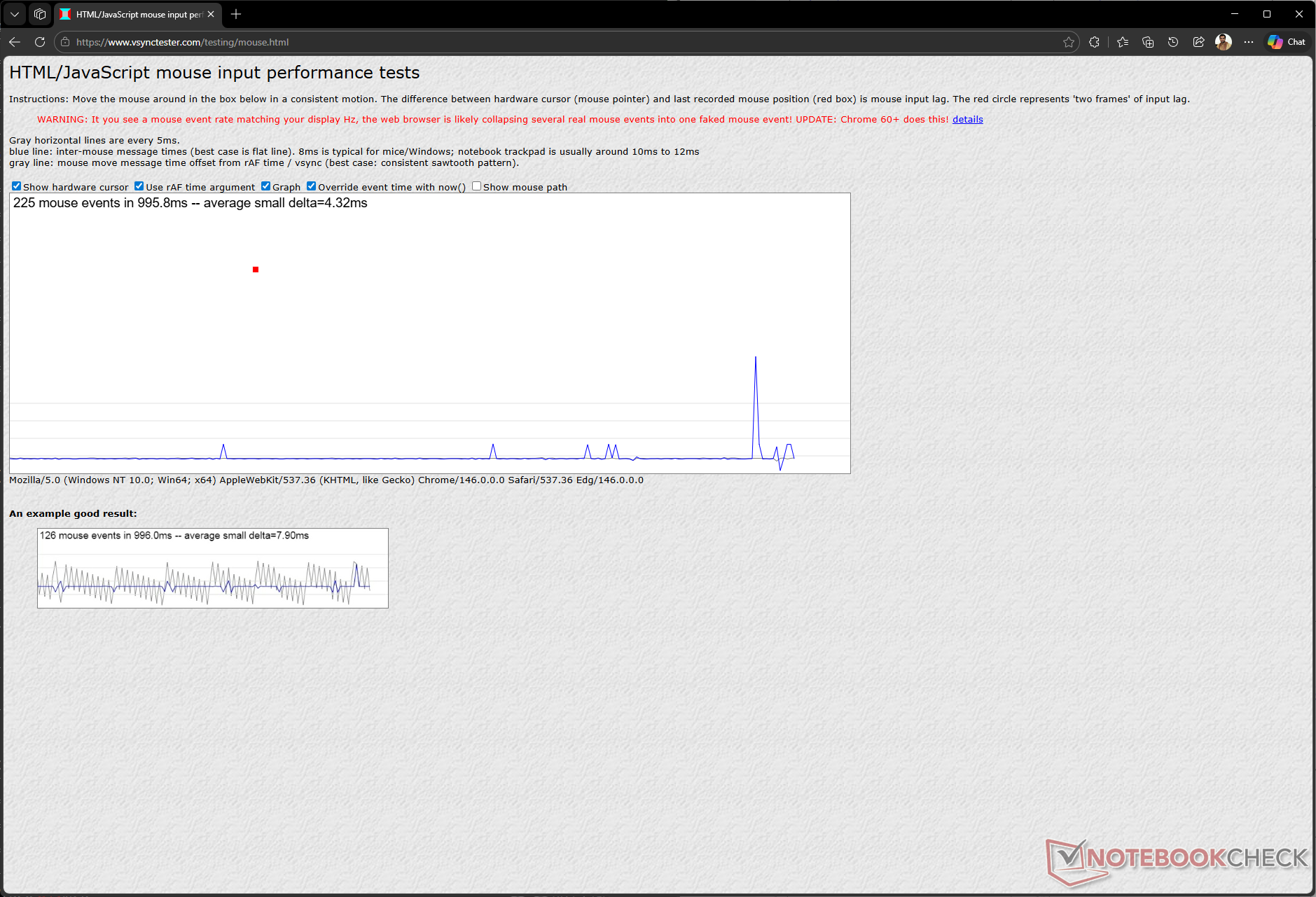 Nur bei höheren DPI-Werten beobachten wir kurzzeitige Erhöhungen des Aktualisierungsintervalls, die jedoch schnell wieder korrigiert werden.