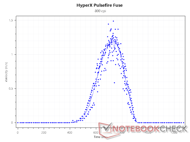Ein Blick auf die PCS-Kurve (Perfect Control Speed) zeigt, dass die Maus bei Geschwindigkeiten zwischen 1,2 m/s und 1,3 m/s den Sweet Spot für maximale Abtastung erreicht.