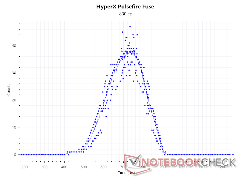 Bei einer Abfragerate von 1 kHz und 800 DPI finden wir, dass der PAW3311 von Fuse Wireless eine gute Anzahl von Zählungen nahe der zentralen Kurve verfolgt.