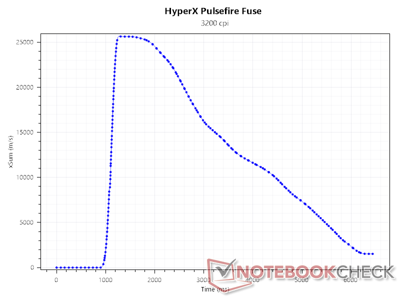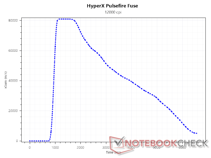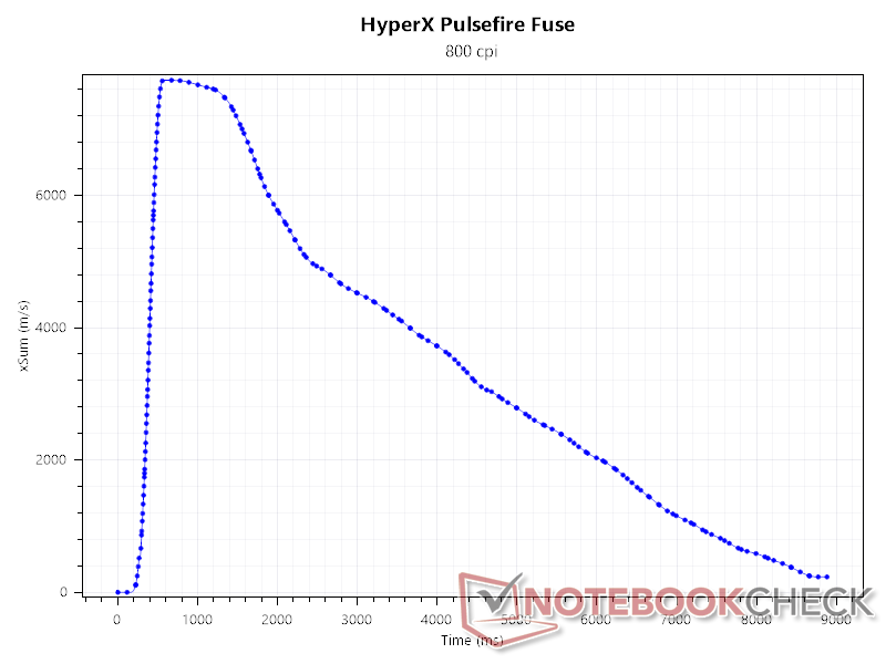 Die Beschleunigung und Verlangsamung der Fuse Wireless zurück zum Ursprung zeigte annehmbare SRAV-Kurven, was darauf hindeutet, dass die Maus von Natur aus wenig bis gar keine Sensorbeschleunigung aufweist, die das Spielen beeinträchtigen könnte.