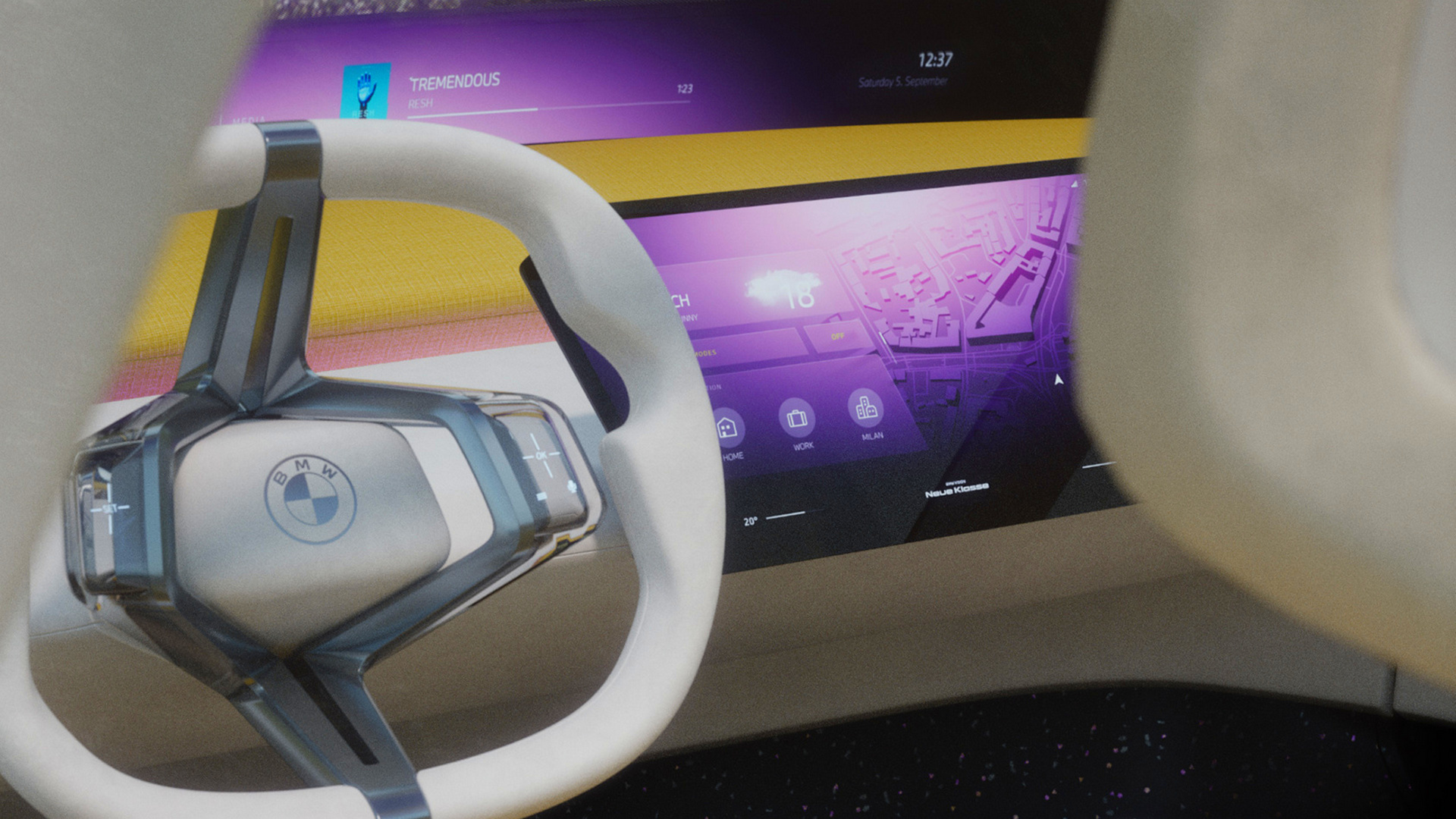 Mit dem BMW Panoramic Vision, einem neuen multifunktionalen Lenkrad, dem neuen Central Display und einem neuen BMW 3D-Head-Up-Display (HUD) als zentrale Anzeige- und Bedienelemente, soll die Neue Klasse zu einem digitalen Erlebnisraum für Fahrer und Insassen werden das BMW typische Nutzererlebnis in den künftigen Elektromodellen der Neuen Klasse neu interpretieren.