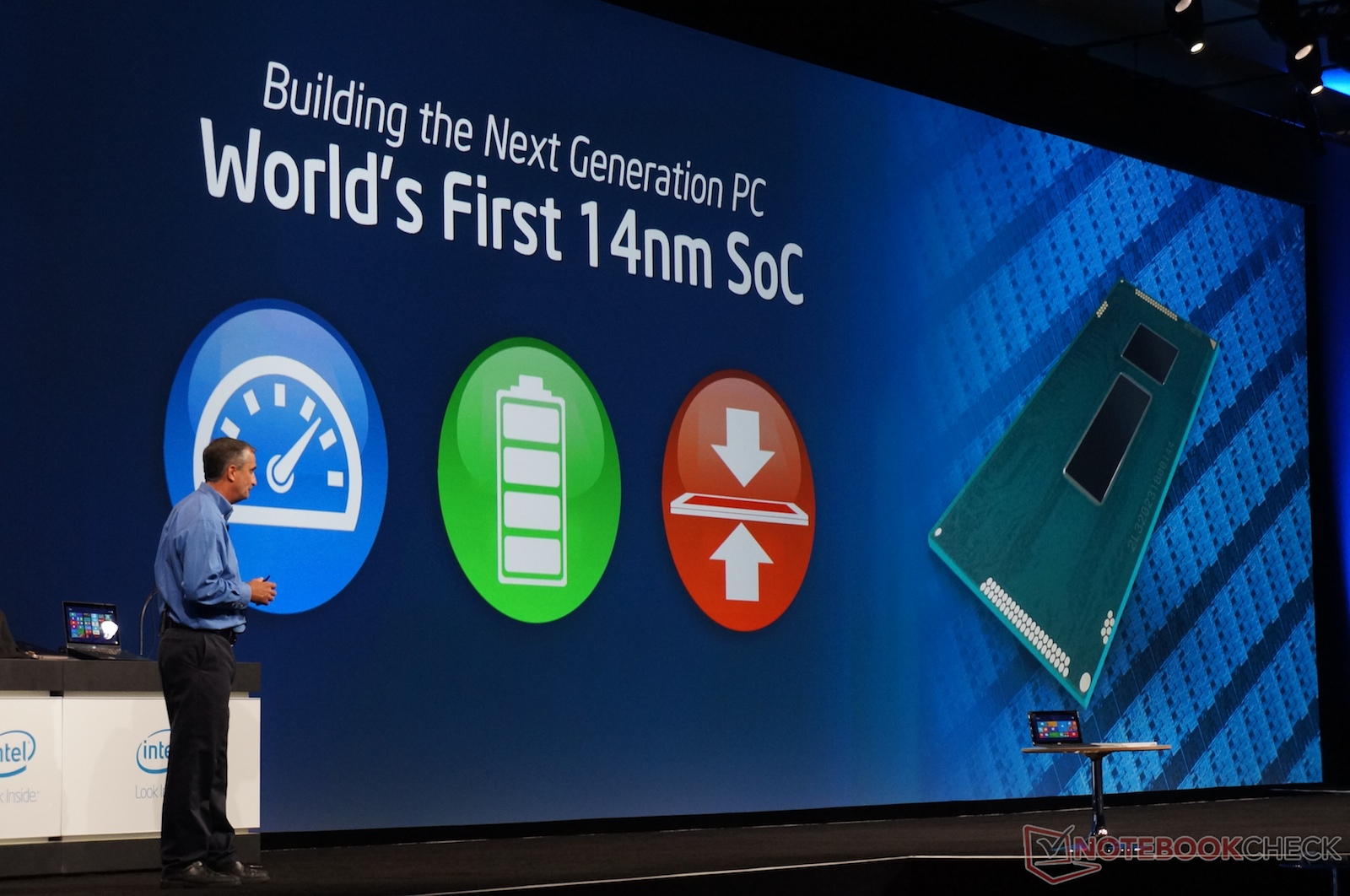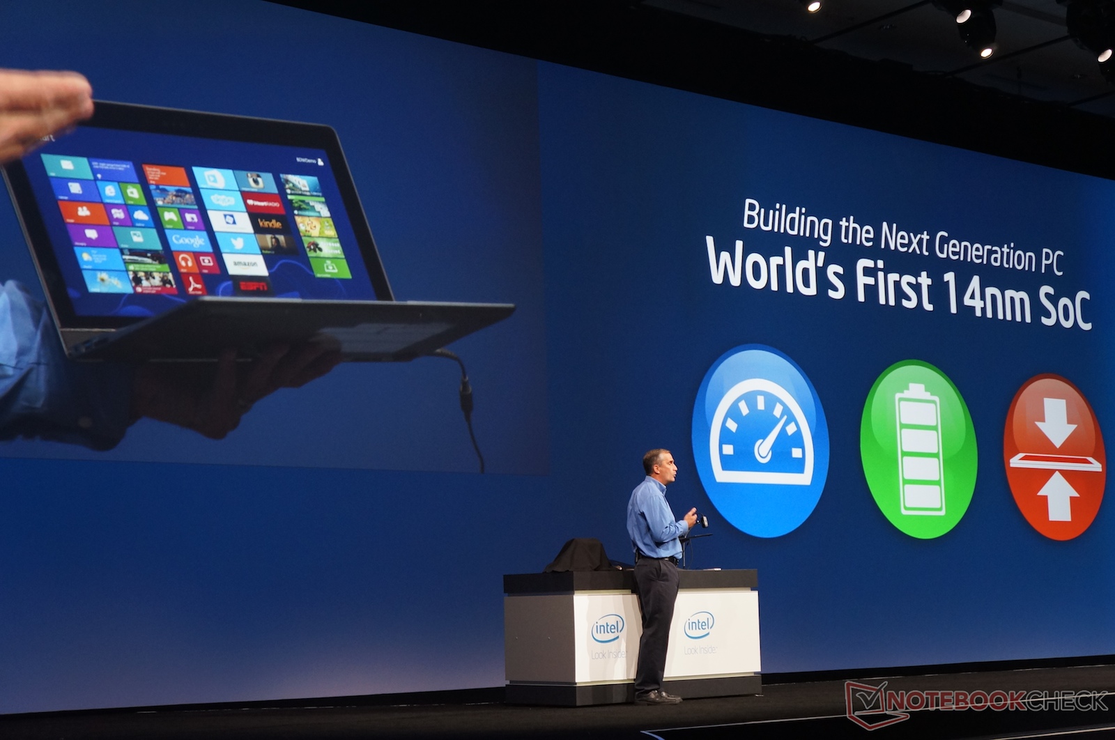 Die mit Spannung erwartete Broadwell-CPU, deren Vorstellung für Mitte 2014 erwartet wird, wurde von Intel in einem ersten lauffähigen System präsentiert. Dank eines neuen 14-Nanometer-Prozesses soll die Leistungsaufnahme um stolze 30 Prozent niedriger ausfallen, zudem wird ein ähnlicher Performance-Anstieg wie mit Haswell versprochen. Übrigens: Auch die übernächste Atom-Generation, die allerdings noch gut ein Jahr entfernt sein dürfte, soll von der neuen Fertigung profitieren.