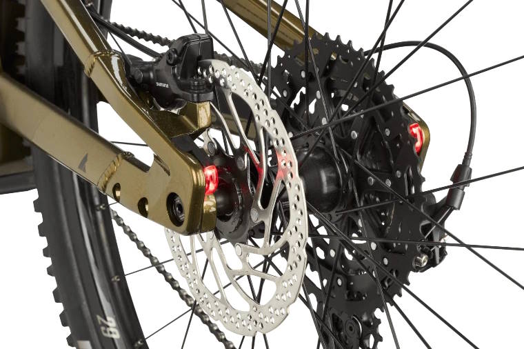 Es soll sich ein verringerter Wartungsaufwand ergeben. Konkret kommt keine Kettenschaltung zum Einsatz, sondern ein Gatex CDX Belt-Carbonriemen - Schmutz soll für einen solchen Carbonriemen kein Thema sein. Im Prinzip zumindest geschützt montiert ist auch die Shimano Nexus-Nabenschaltung mit ihren fünf Gängen, wobei insbesondere im Gelände das Vorhandensein von mehr Gängen durchaus wünschenswert sein könnte - gleichwohl relativiert das Vorhandensein eines Elektromotors die Abhängigkeit von der Gangschaltung ein wenig. Verbaut ist nicht nur eine Beleuchtung, sondern auch Schutzbleche und ein Gepäckträger, ein Fahrradständer fehlt nicht.