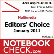 Auch wenn das Asus N53SV dank der erstmals verbauten Sandy Bridge Prozessoren den größten Rummel auf sich zog, lieferte Acer mit dem 4820TG das unserer Meinung nach gelungenste Paket im Jänner im Bereich Multimedia ab. Die Kombination aus i7-640M CPU und HD 6650 GPU ermöglicht selbst bei aktuellen Games eine gute Performance, kann aber gleichzeitig durch eine geringe Lautstärke als auch eine respektable Akkulaufzeit von bis zu 5 Stunden im Surfbetrieb überzeugen. Die SSD in unserer Testkonfiguration trug dazu ihren Teil bei und kann darüber hinaus im täglichen Officebetrieb durch eine deutlich spürbare Beschleunigung punkten.