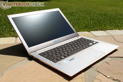 Wiederholt in einer anderen Liga spielt das Samsung 900X4B, das gemäß dem High-End Anspruch der Serie 9 ein erstklassiges Unibody-Gehäuse samt Intel ULV-Technologie für extra lange Akkulaufzeiten auffährt. Das Display ist matt, hell und löst mit 1.600 x 900 Pixeln auch angemessen fein auf, der Bildkontrast will dagegen nicht wirklich überzeugen, was bei einem überwiegend im Office-Bereich verwendeten Gerät aber noch tolerierbar ist.