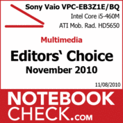 Auch wenn der viel diskutierte Sony-Kollege F13Z dank seines Full-HD Displays mit matter Oberfläche und besonders großem darstellbaren Farbraum, sowie der attraktiven GT425M / i7-740QM Kombination offenbar die besseren Karten vorweisen kann, bleibt das EB3 mit Intel i5 Dual-Core CPU, HD5650 GPU und sRGB Full-HD Display in der Gesamtwertung voran. Einbußen bei der Akkulaufzeit und der Geräuschkulisse, und nicht zuletzt die Problematik eines oftmals beobachteten Pfeifgeräusches bei F13Z Modellen, spielen den zu vergebenden Award an den Sony Vaio EB3Z weiter.