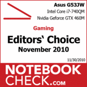 Auch wenn es in unserer Gesamtbewertung nicht ganz für ein "Sehr Gut" gereicht hat, hat sich das Asus G53JW die Auszeichnung "Editors' Choice" November 2010 redlich verdient.