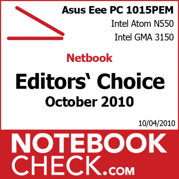 Vier Netbooks waren damit im Oktober angetreten, die bestmöglichste Benotung auf unserer Punkteskala zu erreichen. Mit einem „Sehr Gut“ in den Wertungshimmel aufzusteigen schaffte allerdings nur ein einziges Gerät, der Asus Eee PC 1015PEM. Wesentlich zu diesem Ergebnis beigetragen hat dabei die neue Intel Atom N550 Dual-Core CPU, die die subjektive Arbeitsgeschwindigkeit des Notebooks wesentlich erhöht. Pluspunkt Nummer zwei: mattes Display mit guter Helligkeit. Dies ermöglicht auch einen Einsatz unter freiem Himmel, ohne ständig sein Spiegelbild vor sich zu haben.