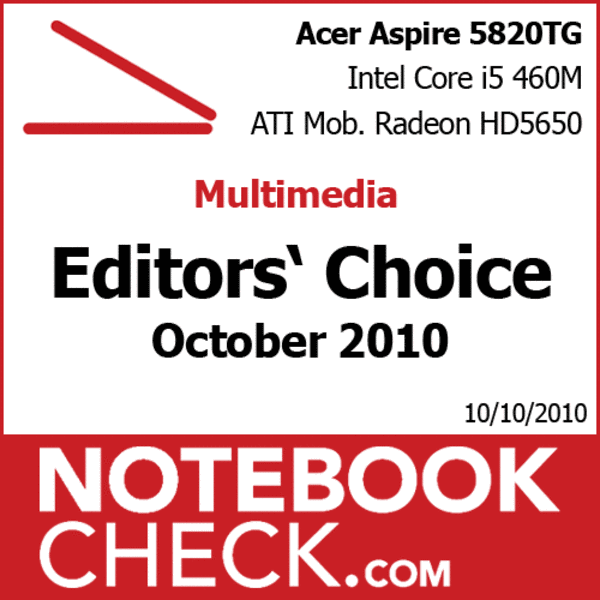 Das Asus G53 hätte insgesamt gute Karten gehabt, dennoch gab es bei uns im Monat Oktober ein weiteres Gerät, das insgesamt dann doch eine Spur überzeugender abschneiden konnte. Das Acer Aspire 5820TG bietet wie seine Timeline-Kollegen ein optisch wie auch hinsichtlich Preis/Leistung attraktives Gesamtpaket. Ausgestattet mit einer ATI HD5650 Hybrid Grafiklösung (Intel GMA HD) punktet es sowohl in Performance-Fragen als auch mit niedrigen Geräuschemissionen und einer passablen Akkulaufzeit, und das bereits zu einem Preis ab 755 Euro. Abzüge gibt es auch hier beim Display, das durchwegs etwas heller und kontraststärker ausfallen könnte sowie beiden Eingabegeräten, die etwas Eingewöhnungszeit benötigen. Insgesamt liefert Acer aber auch hier ein insgesamt mehr als faires Preis/Leistung Verhältnis.
