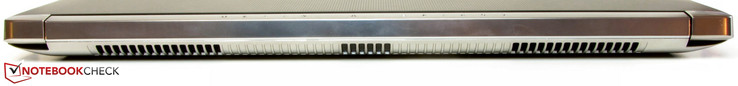 Wenn man sich nur auf die Haltbarkeit bezieht, dann verliert das Y50 in diesem Kapitel wegen seines verspielten Gehäuses mit vielen Designelementen und verschiedenen Materialien. Es gibt matte und gummierte Oberflächen, einen glänzenden Bildschirmrahmen, einen Deckel aus gebürstetem Aluminium und stylische Lautsprechergitter. Das Ergebnis sieht auch ganz gut aus, aber es ist im Vergleich mit Unibody nahen Konstruktionen einfach etwas anfälliger für Beschädigungen und Risse. Zudem ist das Y50 (2,4 kg) auch spürbar schwerer als die beiden Geräte von Asus (2,0 kg) und Acer (2,2 kg).