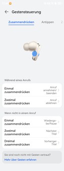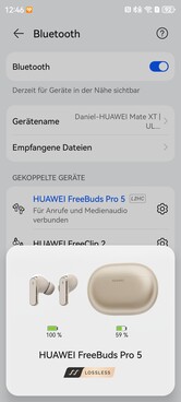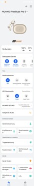 Das Einrichten der Huawei FreeBuds Pro 5 gelingt simple über ein Bluetooth-Pairing. Dank Microsoft Swift Pair erfolgt dies an PCs, sobald das Ladeetui erstmals aufgeklappt wird, gleiches gilt für Huawei-Smartphones und Tablets. Da Google Fast Pair nicht unterstützt wird, muss hier der Kopplungsvorgang manuell angestoßen werden. Durch Multipoint-Support können zwei Geräte gleichzeitig gekoppelt sein, die Pairingliste kann bis zu acht Geräte verwalten.