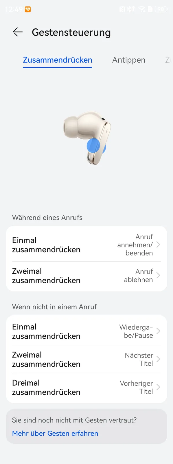 Die Ohrhörer sind angenehm leicht und können über die Silikonaufsätze an die Größe des Innenohrs angepasst werden. Hierfür sind vier verschiedene Größen im Lieferumfang enthalten: XS, S, M und L. Die Aktivschaumaufsätze der FreeBuds Pro 4 liegen nicht mehr bei. Mit dem Passformtest kann die passende Größe ermittelt werden, um einen optimalen Sitz zu gewährleisten. Die Ohrhörer sitzen dann recht fest im Gehörgang, ohne zu viel Druck auszuüben. Auch längeres Tragen empfinden wir noch als angenehm und auch beim Sport halten die FreeBuds Pro 5 gut.
