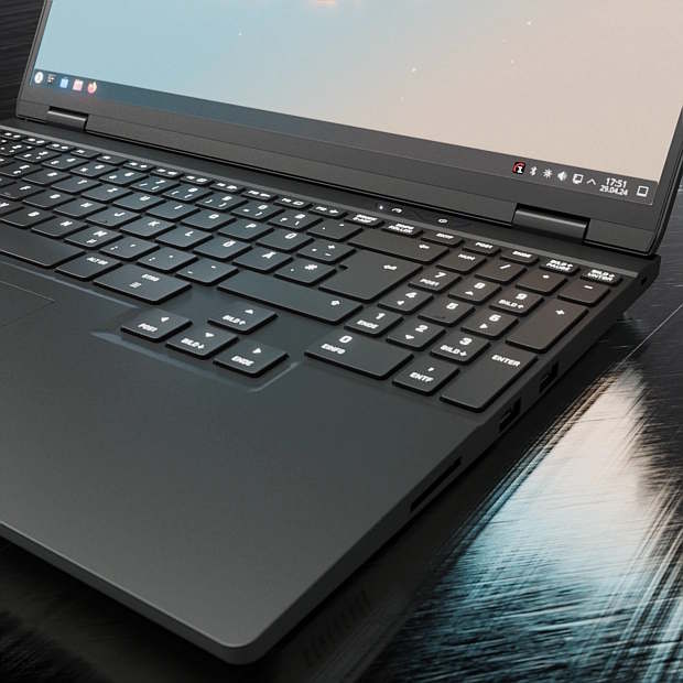 Unterstützt wird ein bis zu 128 Gigabyte großer DDR5-5600-Arbeitsspeicher oder ein maximal 96 Gigabyte großer DDR5-6400-Arbeitsspeicher. Für die Installation stehen zwei Slots bereit. Ebenfalls zwei SSDs im M.2 2280-Format können installiert werden, die Anbindung erfolgt jeweils über vier PCIe 4.0-Lanes. Die drahtlose Anbindung an ein Netzwerk ist über WiFi 7 möglich, dafür kommt eine M.2 2230-Schnittstelle zum Einsatz. Der verbaute Ethernet-Port unterstützt Gigabit-Geschwindigkeit. Zur Ausstattung zählen eine zu Windows Hello kompatible Full HD-Webcam, zwei Lautsprecher mit einer Leistung von jeweils 2 Watt und ein SD-Kartenleser mit UHS-II-Geschwindigkeit. Der 99 Wh starke Akku kann über das 240-Watt-Netzteil oder bei geringerer Last über USB PD mit mindestens 100 und maximal 140 Watt versorgt werden. Angegeben werden ein Gewicht von 1,95 Kilogramm und eine Bauhöhe von 22 Millimetern, Displaydeckel und Gehäuse bestehen aus Aluminium. In einer Art Basiskonfiguration mit 16 Gigabyte Arbeitsspeicher und Tuxedo OS werden 1.699 Euro aufgerufen. Die Auslieferung soll ab Ende Februar erfolgen.