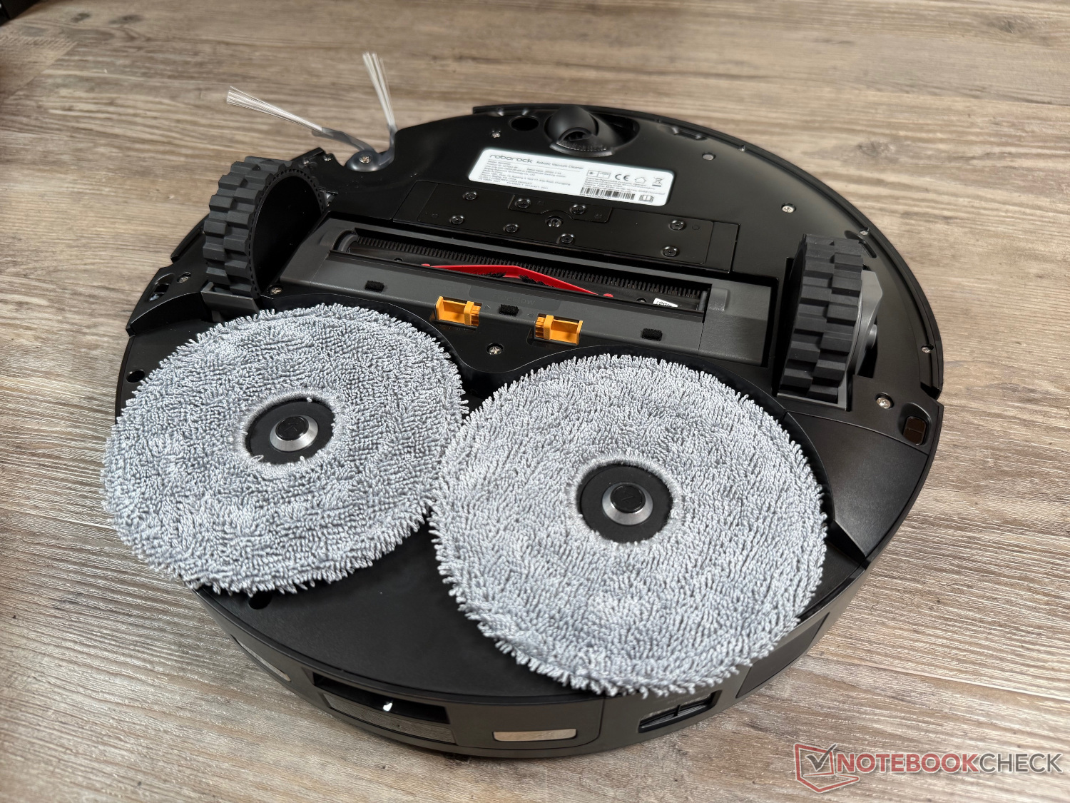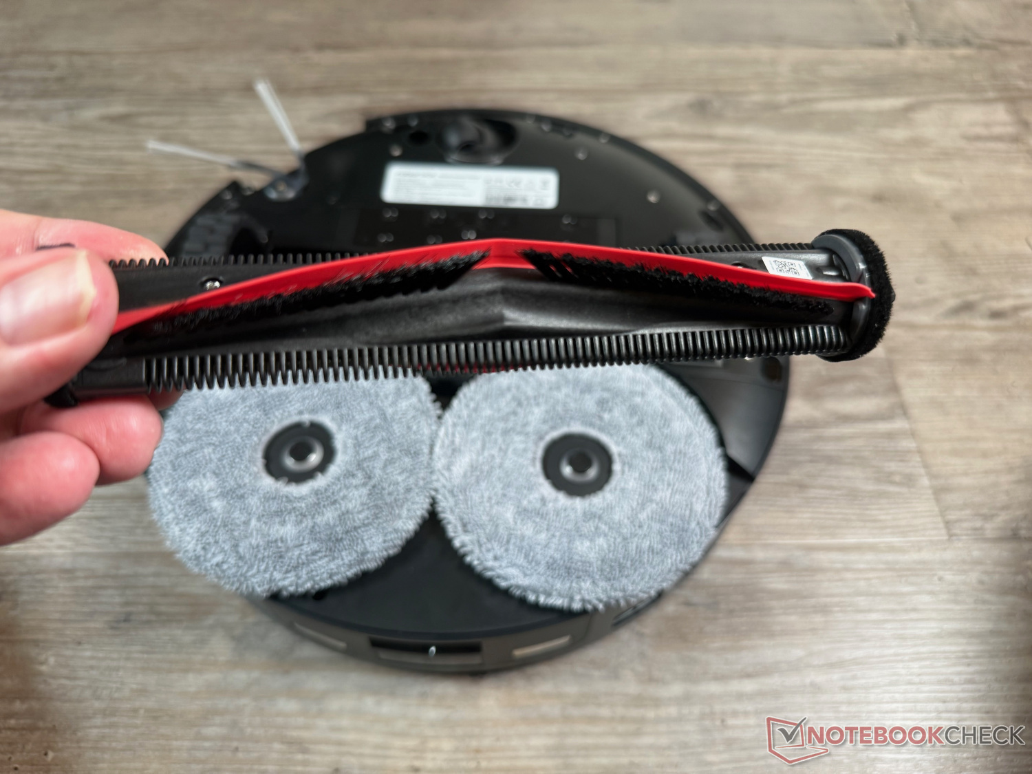 Die Saugleistung liegt mit 22.000 Pa für ein Modell aus dem Frühling 2025 auf Top-Niveau, auch wenn es mittlerweile Modelle mit noch mehr Saugkraft gibt. Auf eine zweigeteilte Hauptbürste verzichtet Roborock, setzt aber dennoch auf ein Anti-Verhedderungssystem. Dazu sind dank FlexiArm die Seitenbürste sowie einer der beiden rotierenden Wischmopps ausfahrbar, um gründlicher in Ecken und entlang von Kanten zu reinigen. Zudem können die beiden anhebbaren Wischmopps bei der Teppichreinigung in der Station verbleiben.